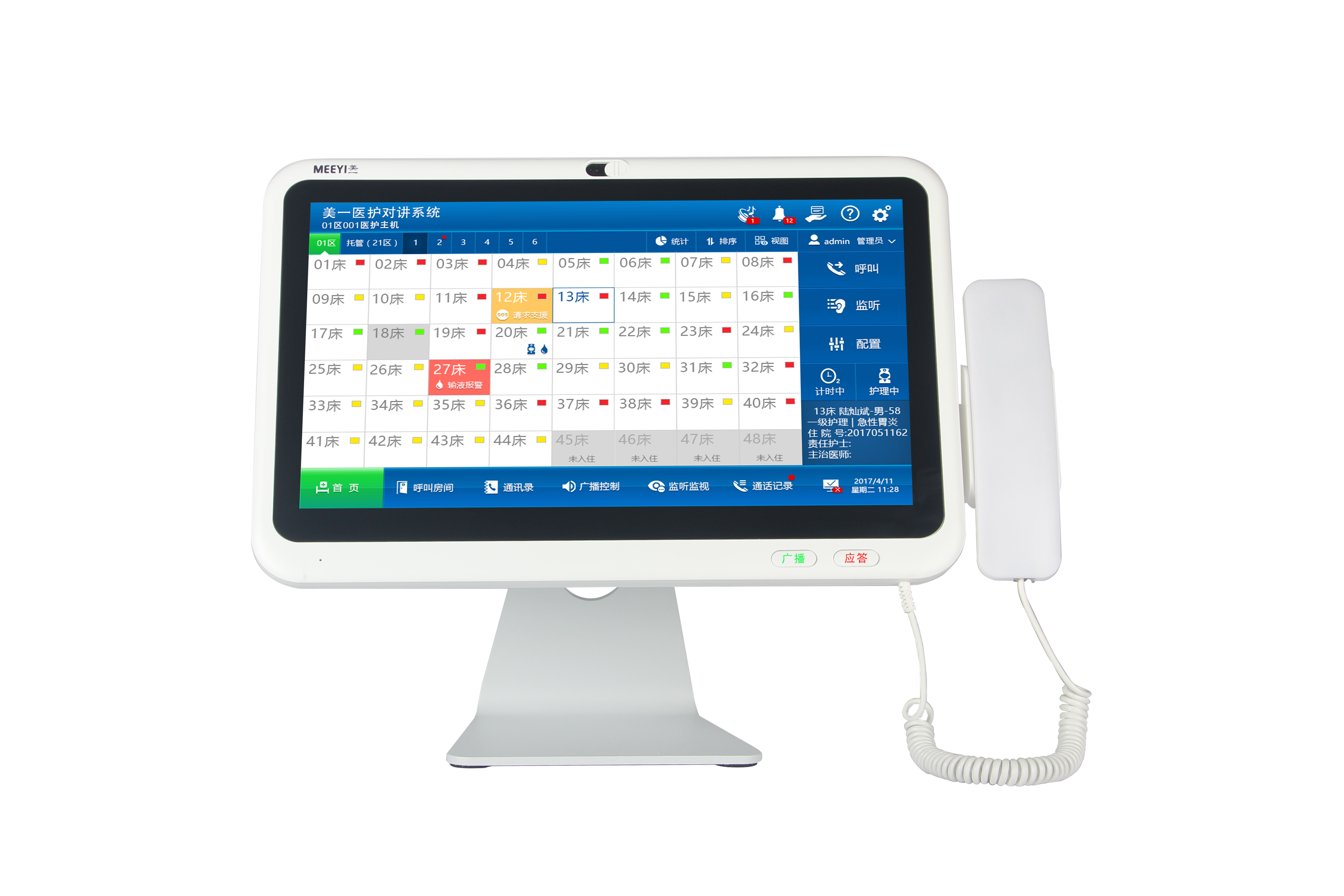 医护主机与医护主机一体式,集成听筒、集成NFC、可开关的高清摄像头,扩展性强